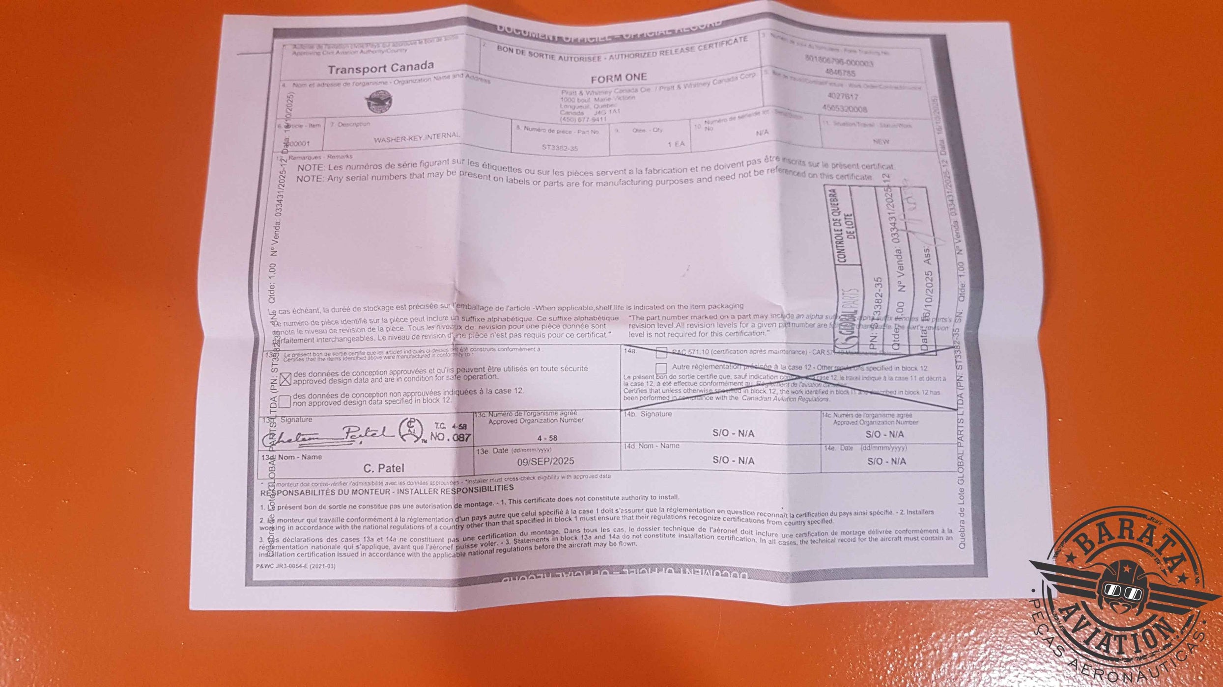 ST3382-35 Pratt & Whitney Washer -New